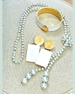 イヤリング、ネックレス、バングルでキラキラを足していきます。
