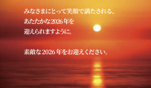 記事一覧 Home › 記事一覧 › 12月31日 12月31日 今年も大変お世話になりました。皆さまに支えられ、無事に一年を締めくくることができました。来年も心あたたまる一年になりますように。良いお年をお迎えください。 2025年12月31日 | Posted in 記事一覧 | | No Comments » 関連記事 4月3日 春のはじまりと、東京の開花発表 春の気配 富士山の日 2月14日 < 冬至 大寒 >